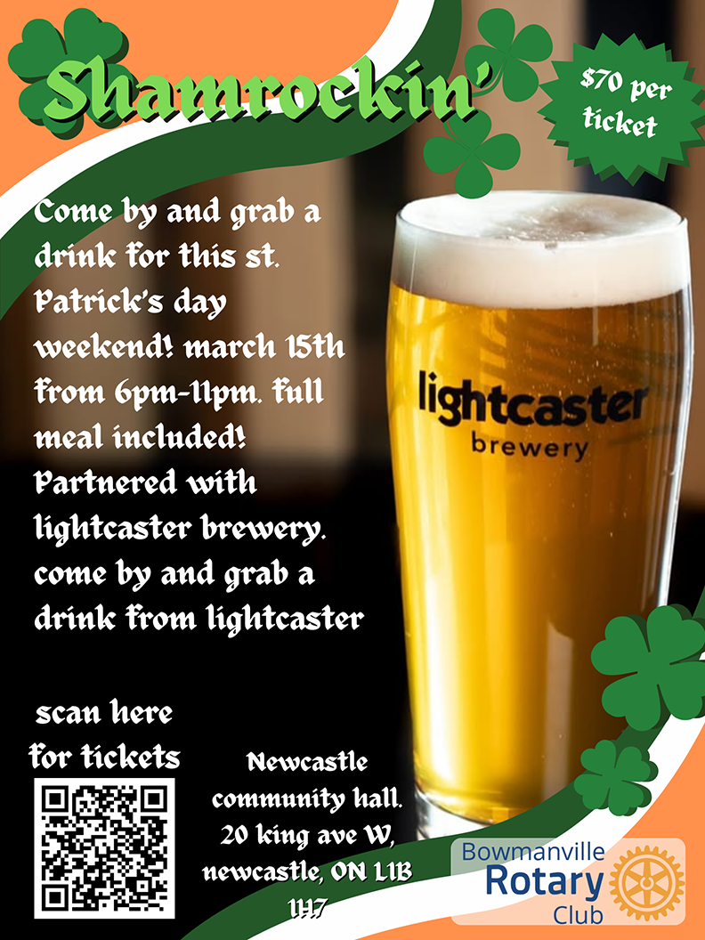 Staurday March 15th from 6:00 PM to 11:00 PM, at the Newcastle Community Hall, 29 King avenue west,