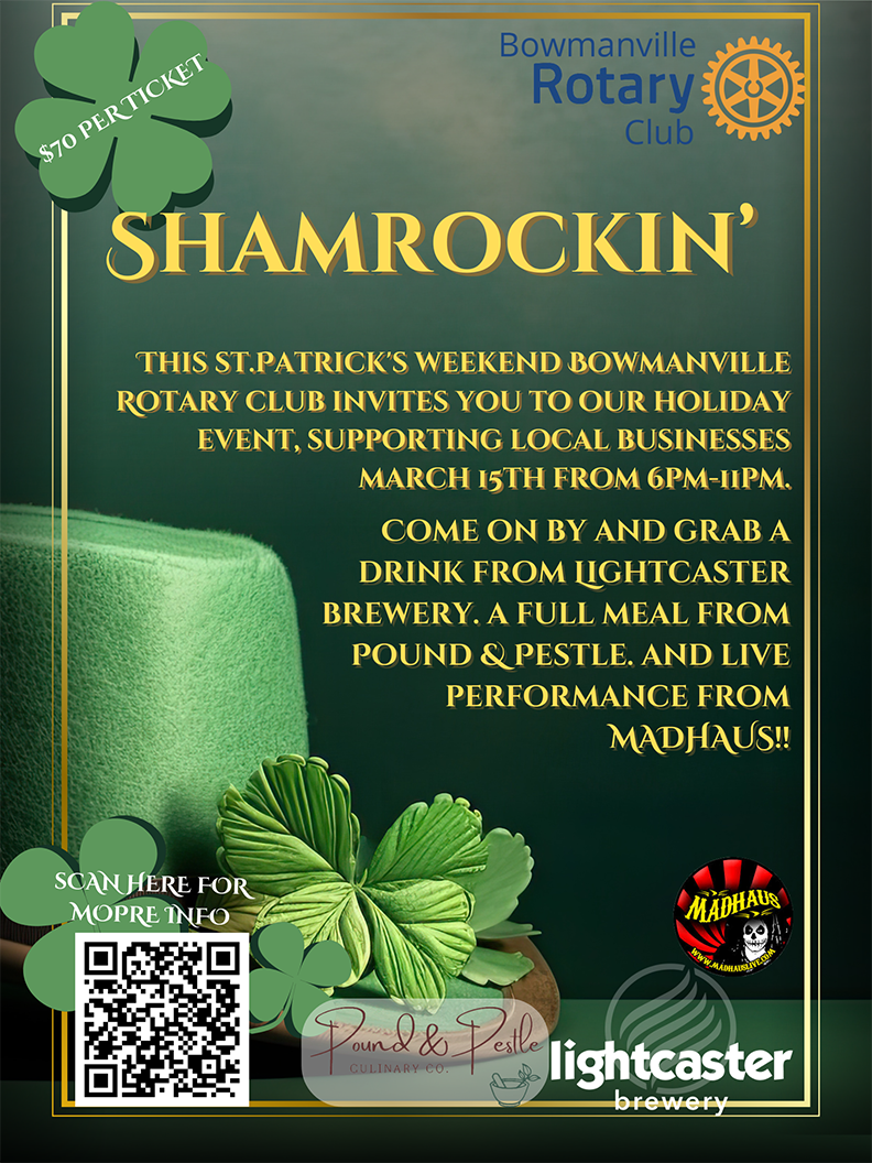 Organized by the Bowmanville Rotary club to raise funds for local charity organizations. All profits goes to help our people in need.