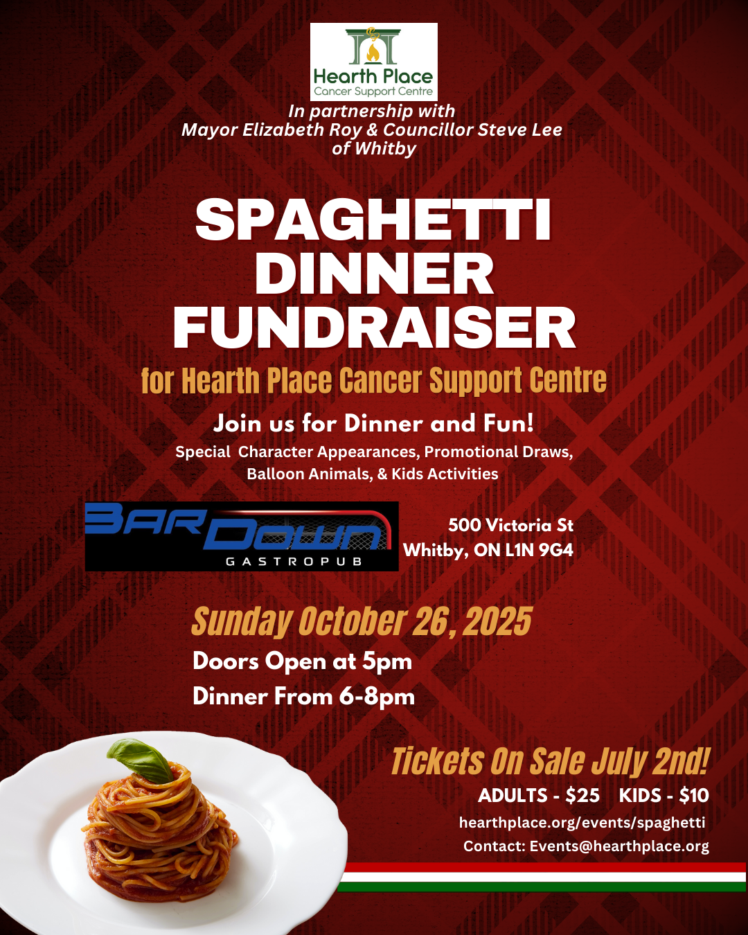 Spaghetti Dinner Fundraiser for Hearth Place Cancer Support Centre at BarDown Gastropub