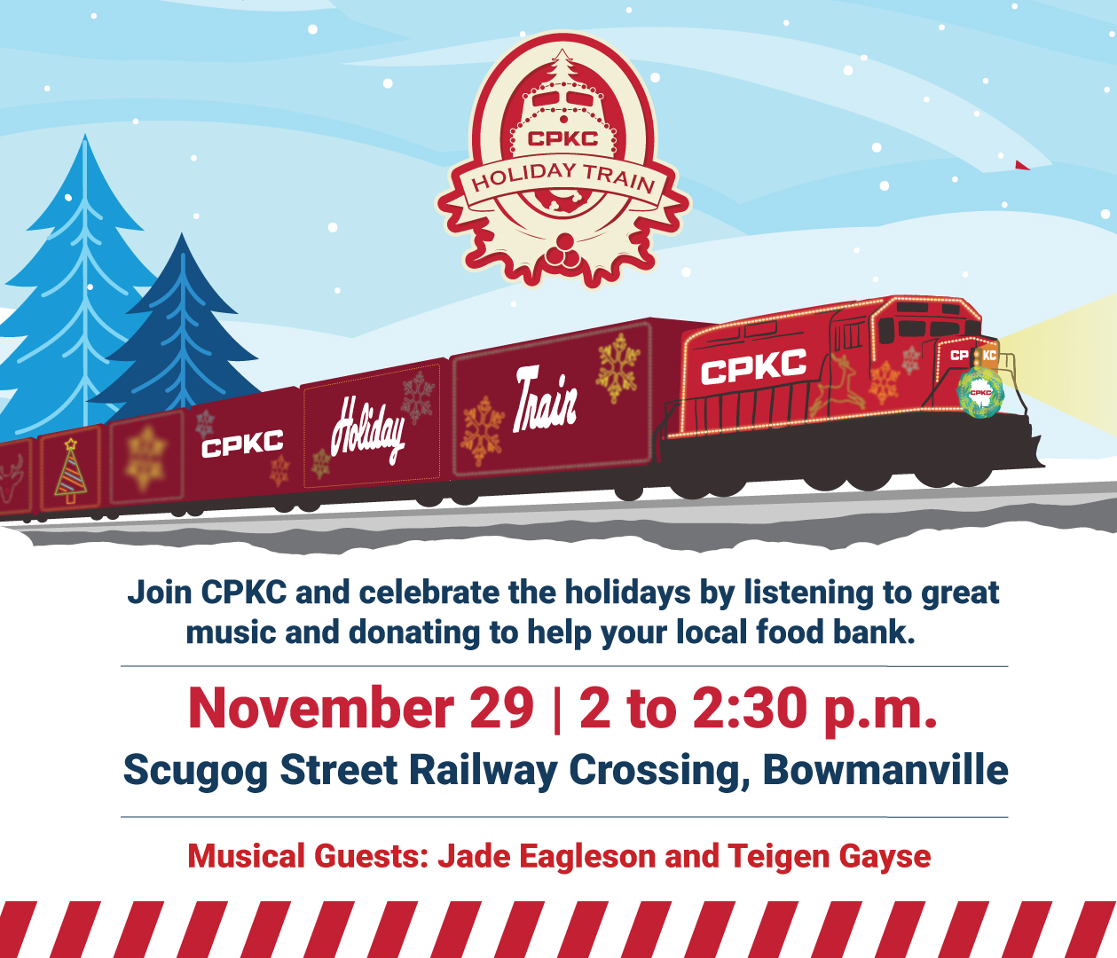 Join CPKC and musical guests Jade Eagleson andTeigen Gayse on November 29 at 2 p.m. and celebrate the holidays by listening to great music and donating to help your local food bank.